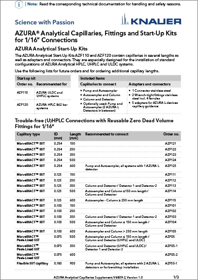 AZURA Analytical Capillaries, Fittings and Start-up Kits Supplement EN (V6809-2)