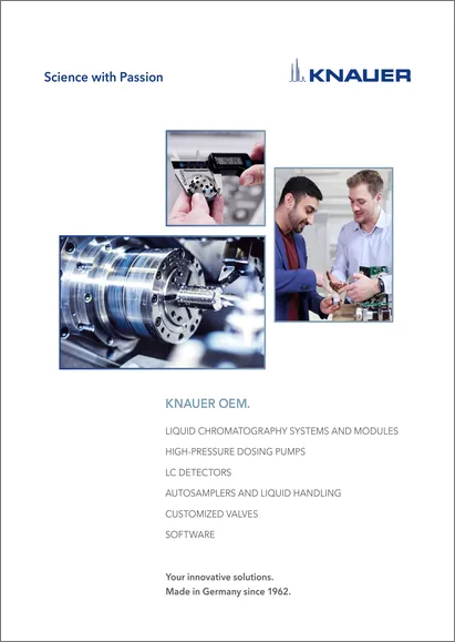 The KNAUER OEM product portfolio including liquid chromatography systems and modules, high pressure dosing pumps, LC detectors, manual injection and autosamplers, HPLC valves, software.