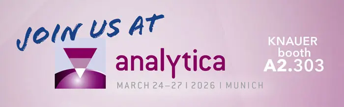 From March 24 to 27, 2026, it will be time for analytica again. Visit KNAUER at booth #303 in hall A2, where we will be presenting our most important products and innovations: