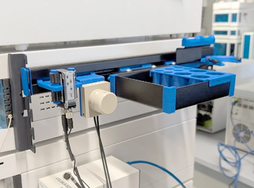 Holders for columns, reagent vessels, bottles, pipettes, air and pressure sensor, syringe filters, pulse damper ... everything you can imagine