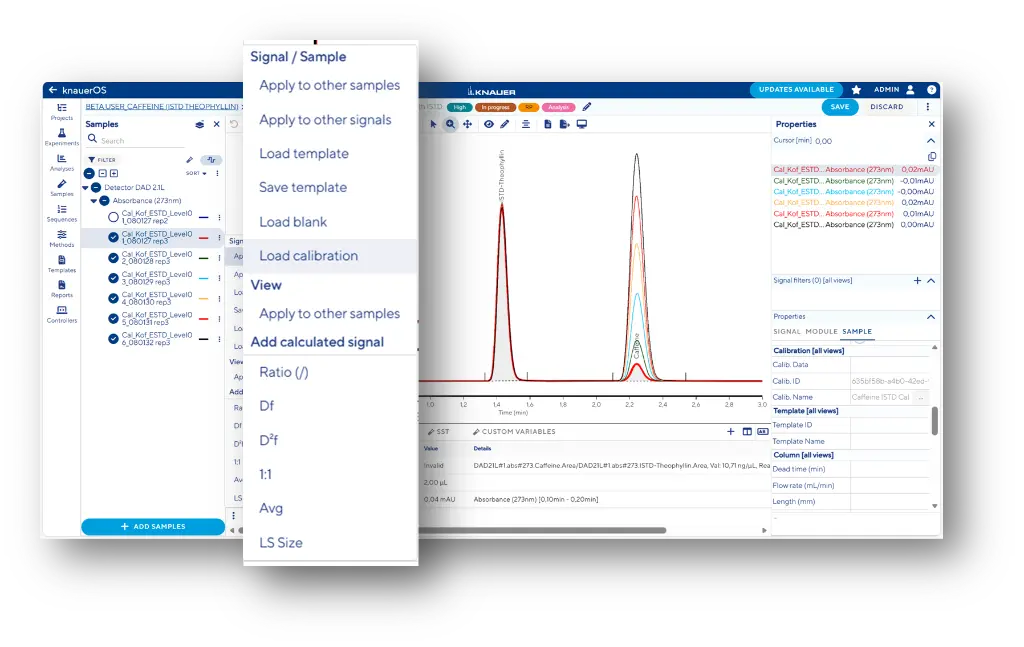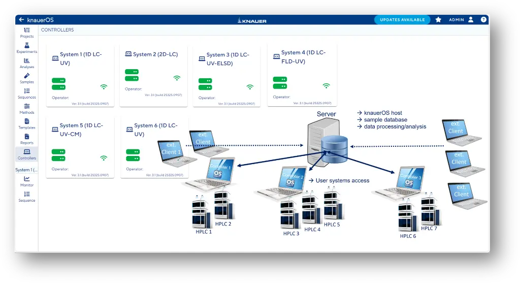 knauerOS is a modern, browser based chromatography software for the efficient acquisition, evaluation, and management of HPLC data. The software was developed to map complex chromatography workflows as simply as possible, with maximum team and user flexibility, unlimited KNAUER system scalability, regulatory compliance, and cost-effectiveness.